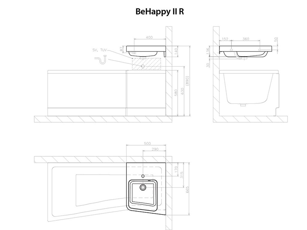 Rohové umyvadlo BeHappy II je dodáváno s přepadem. Instaluje se na zeď do rohu nebo nad vanu BeHappy II, kde představuje unikátní řešení úspory místa při zachování veškerého pohodlí při jeho používání. Pravá nebo levá varianta umyvadla je dána delší stranou, resp. rohem, do kterého umyvadlo umístíte. Baterie musí být vždy proti vám. Umyvadlo je dodáváno jen s otvorem 35 mm pro stojánkovou baterii. Rohové umyvadlo BeHappy II doporučujeme doplnit umyvadlovou piletou nízkou a sifonem trubkovým. Pro ucelené řešení a designový soulad koupelny doporučujeme umyvadlo kombinovat s ostatními výrobky konceptu BeHappy II (zrcadlem BeHappy II, vanou BeHappy II), stojánkovou baterií RAVAK a dalšími výrobky RAVAK. Montážní sada (připojovací hmoždinky, vruty, atd.) včetně krytky přepadu je součástí dodávky.