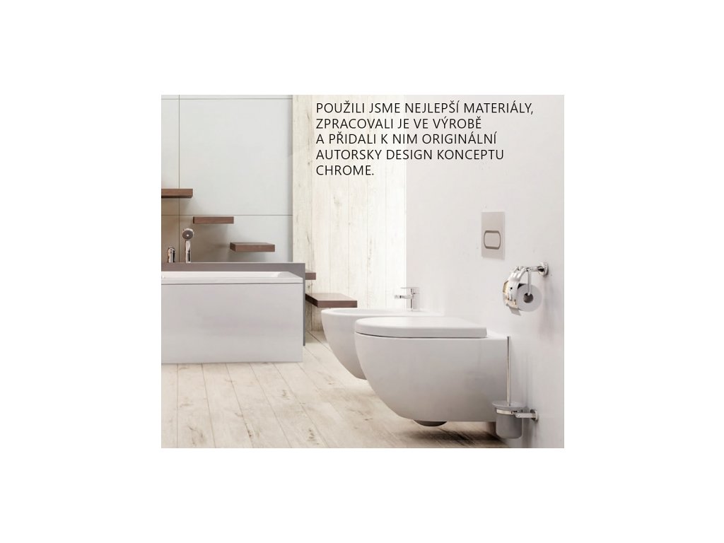 Kvalitní keramický materiál ve svěžím a domyšleném designu pro každý den. K WC doporučujeme dokoupit WC sedátko Chrome vybavené zpomalovacím systémem Soft close. Pro ucelené řešení toaletní místnosti je možné dokoupit doplňky Chrome.