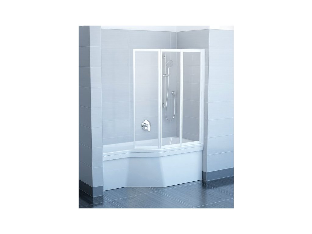Ravak VS3 130 – BÍLÁ GRAPEVanová třídílná skládací stěna Ravak VS3 130 – Bílá Grape. Rozměry 1296×1400 mm.