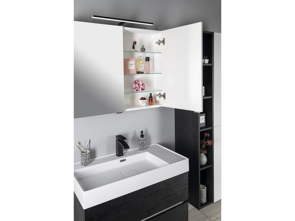 RIWA galerky poskytují dostatečný prostor pro uskladnění kosmetiky, hygienických potřeb i holicího strojku. Velké zrcadlo, pod kterým naleznete každou maličkost, si zajisté oblíbíte. Galerky jsou vybaveny výkonným LED osvětlením. Širokou škálu variability zaručuje možnost kombinace s otevřenými policemi RIWA.