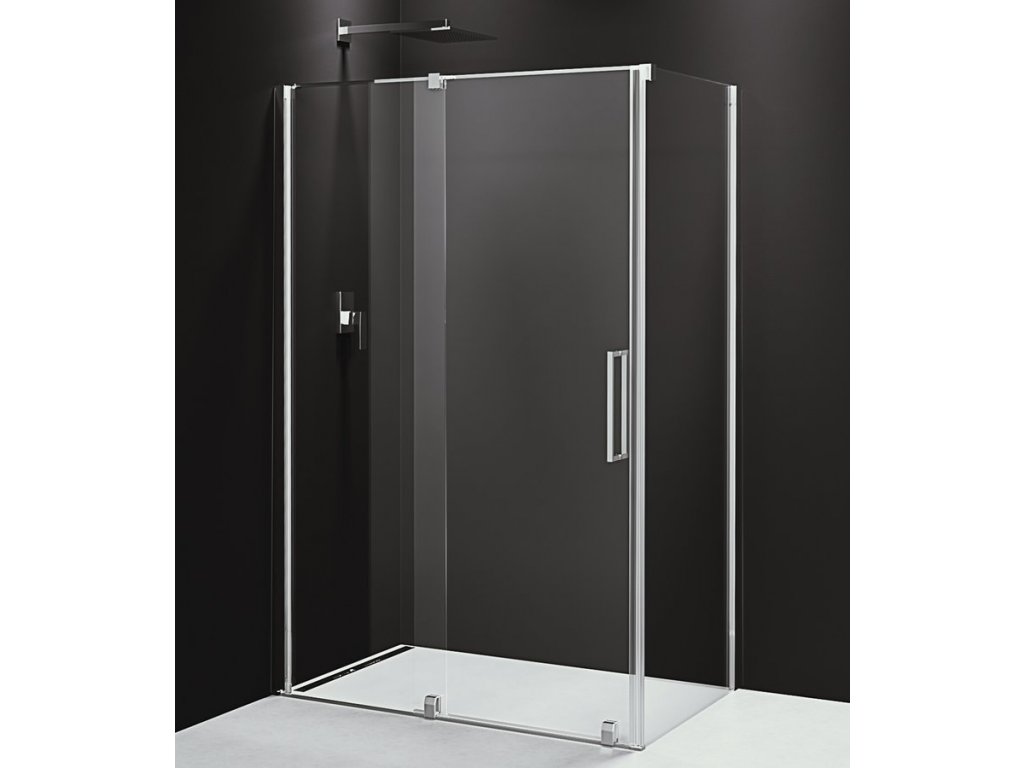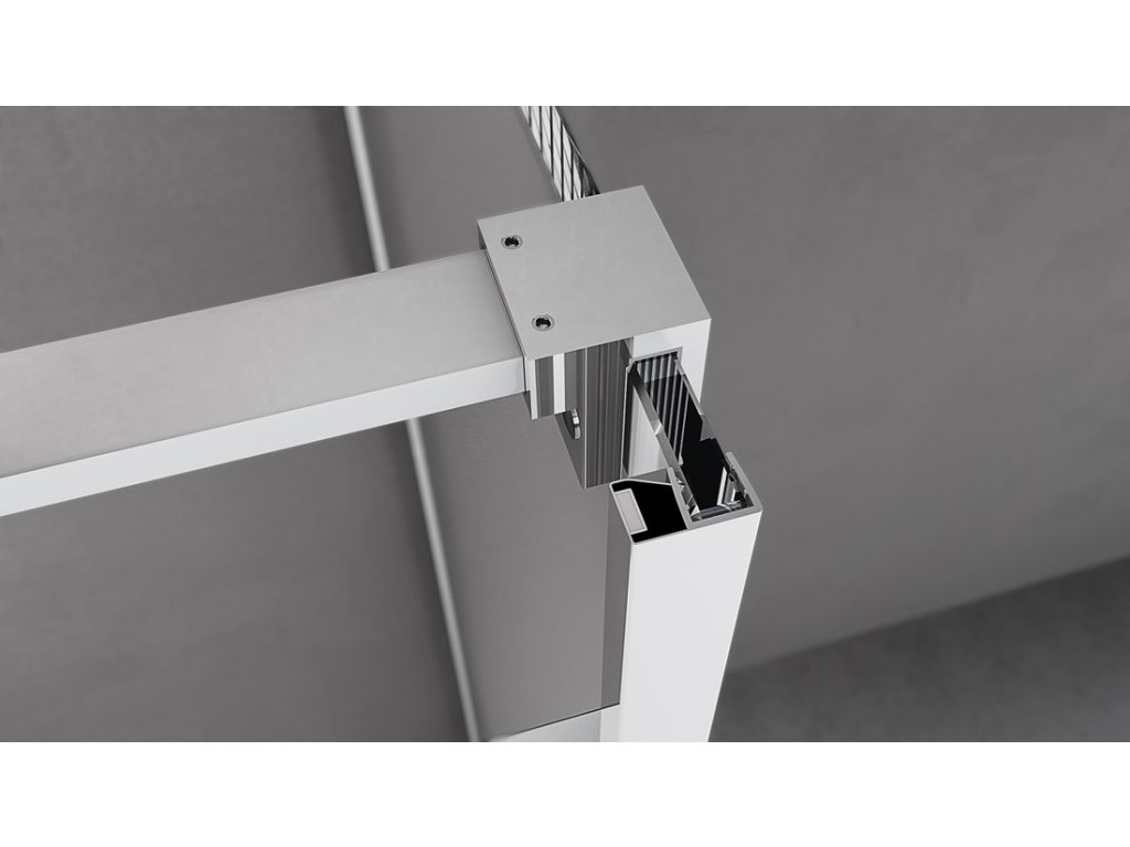 - Dvojdílné sprchové dveře do prostoru (pevná a posuvná část) s hliníkovými profily v chromu nebo matně černé povrchové úpravě
