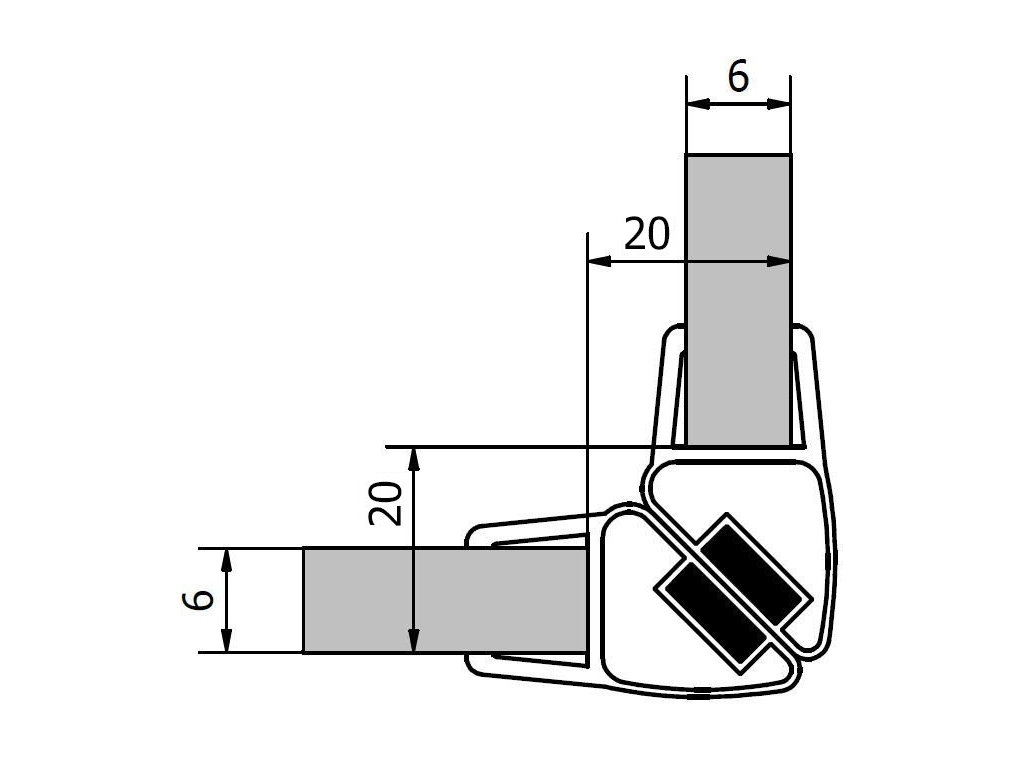 Sada dvou těsnění (magnet) na 6mm sklo, 2000mm, varianta roh
