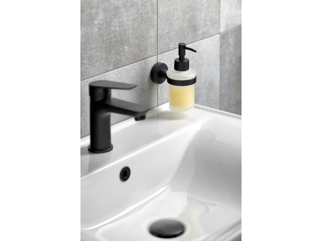 SAMBA dávkovač mýdla 150ml, mléčné sklo, černá mat