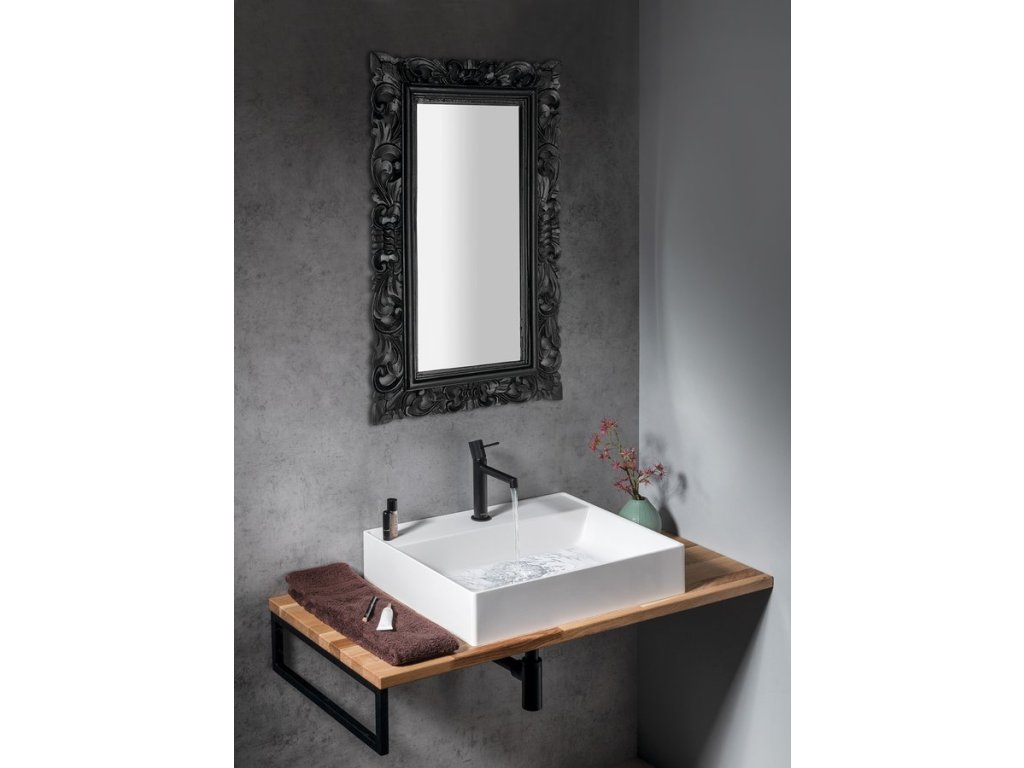 SAMBLUNG zrcadlo ve vyřezávaném rámu 40x70cm, černá
