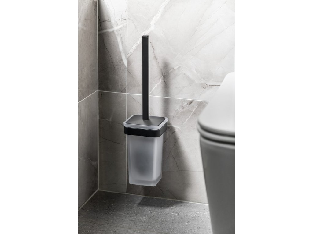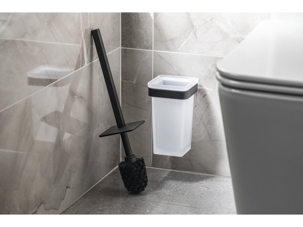 SAMOA WC štětka závěsná; mléčné sklo; černá mat