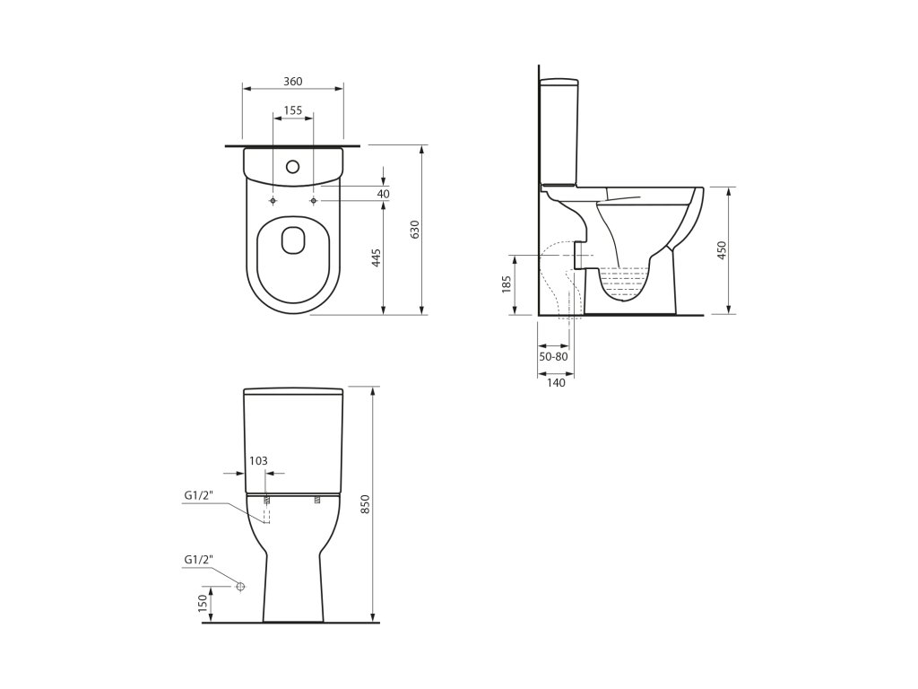 Rimless (NoRim) – toalety bez tradičního oplachového kruhu. Hladký povrch bez dutin a záhybů. Oplachová voda vytéká rozdělovačem vody pouze ze zadní části WC mísy a díky speciálnímu tvaru keramiky dokonale opláchne vnitřní prostor. Výhodou je snadná údržba a čištění WC mísy.