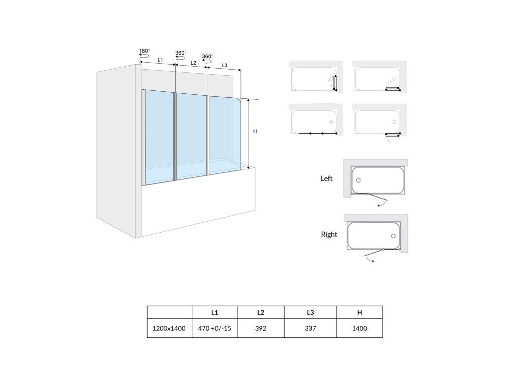 Santech Axel 120 x 140 cm levá 3-DÍLNÁ VANOVÁ ZÁSTĚNA levá