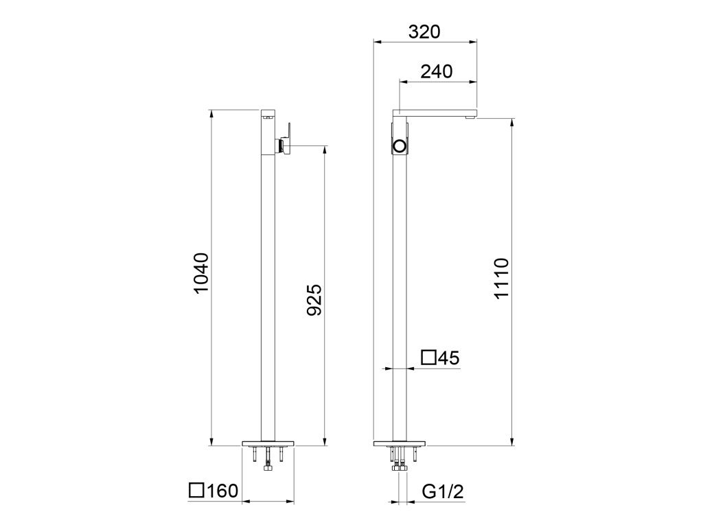 SPECTRE umyvadlová baterie s připojením do podlahy; černá mat
