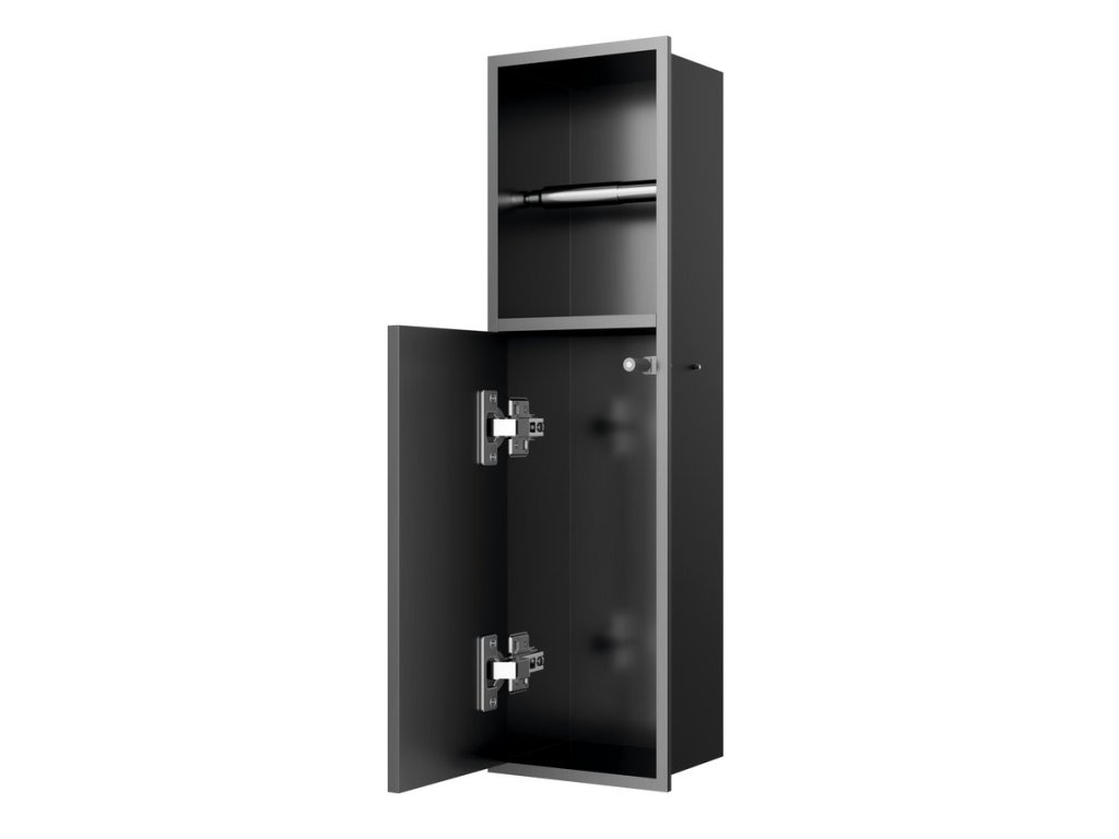 DENBO zapuštěný držák toaletního papíru do obkladu; 600x170 mm; nerez; gun metal