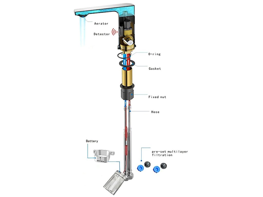 Senzorová stojánková baterie s regulací teploty, 6V DC (4xAA), chrom