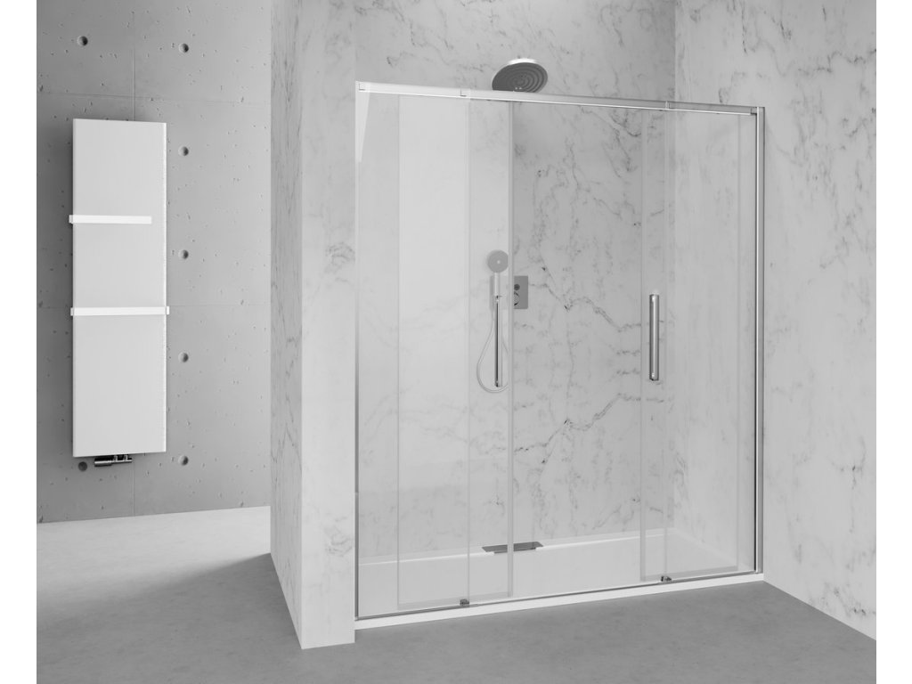 - Dveře jsou děleny na část posuvnou a část pevnou - umožňují variabilní instalaci s levým nebo pravým otevíráním.