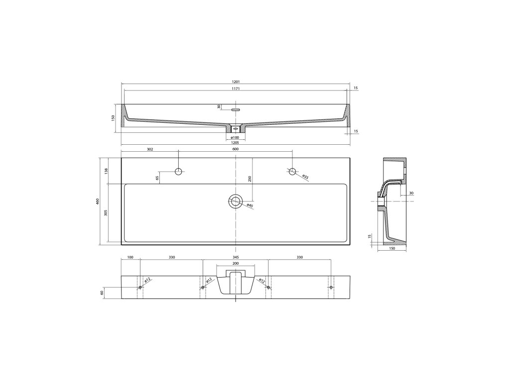 AQUATIC dvojumyvadlo; litý mramor; 120x46cm; bílá