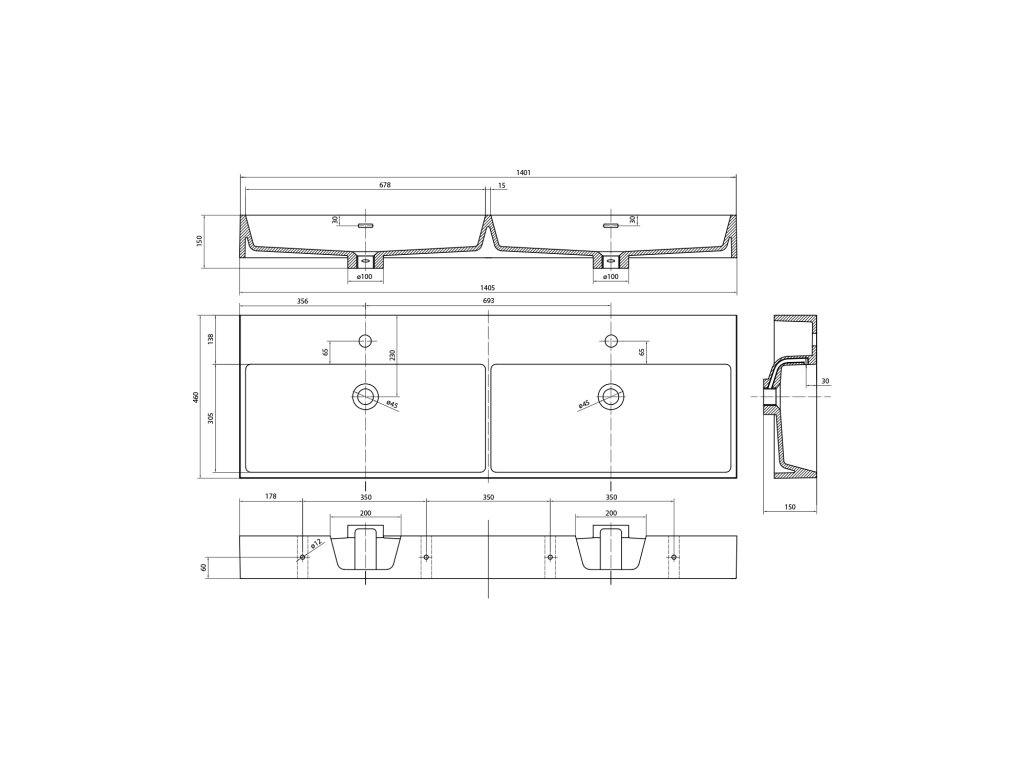 | Typ umyvadla | Dvojumyvadlo |