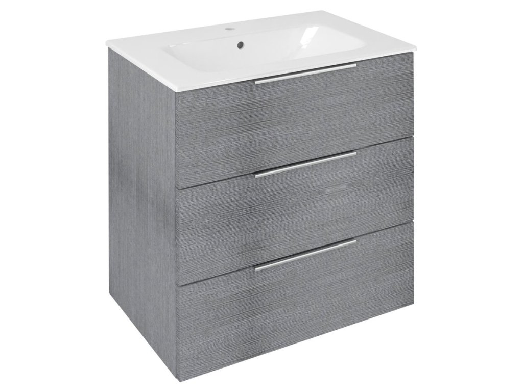 CIRASA umyvadlová skříňka 69;8x75x46cm; 3x zásuvka; dub stříbrný