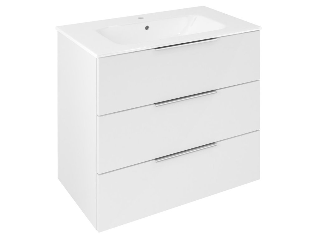 CIRASA umyvadlová skříňka 79;8x75x46cm; 3x zásuvka; bílá lesk