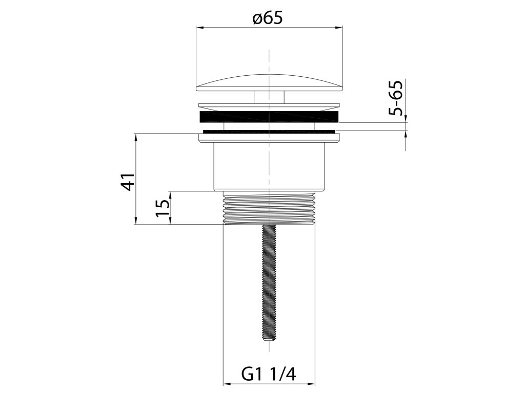 Umyvadlová výpust 5/4“; neuzavíratelná; velká zátka; 5-65mm; chrom