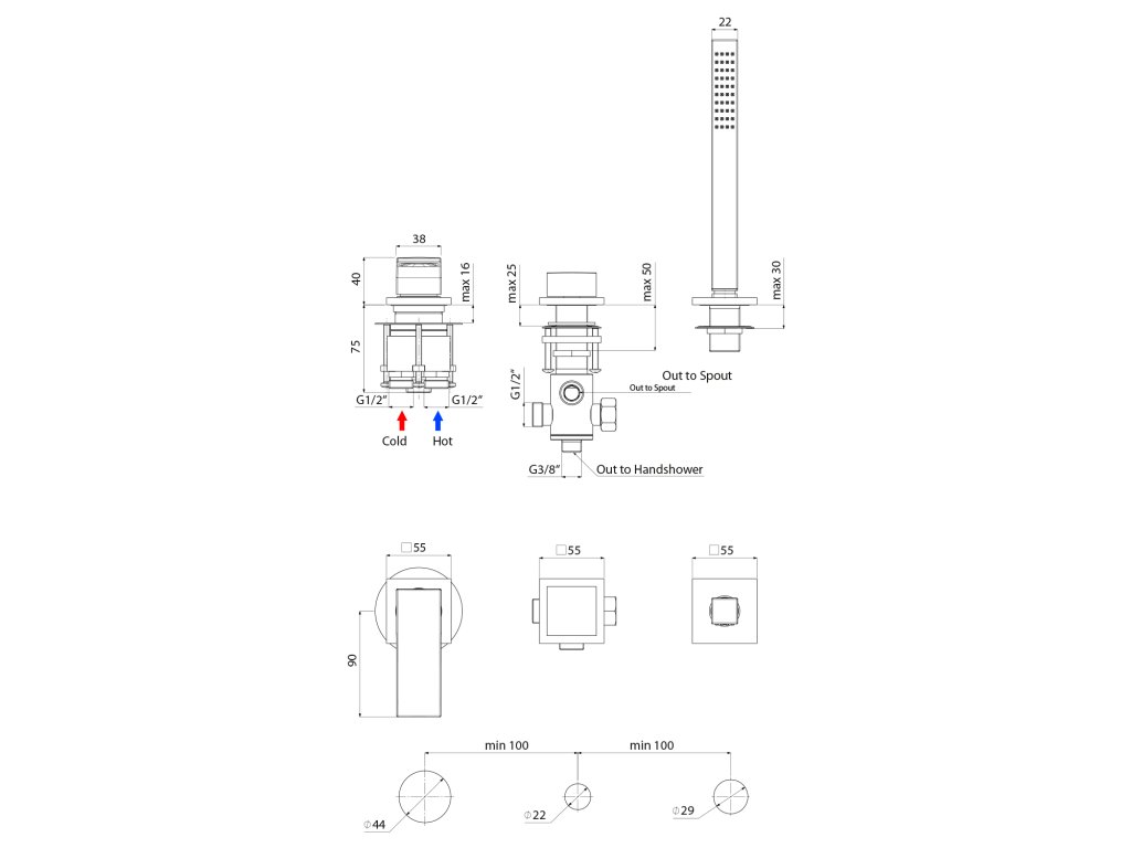 | Instalace | Na okraj vany |