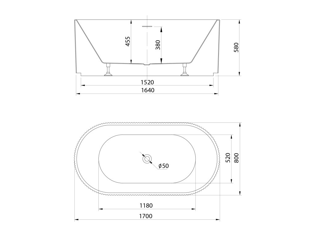 TURIA STRIP volně stojící vana 170x80cm; bílá