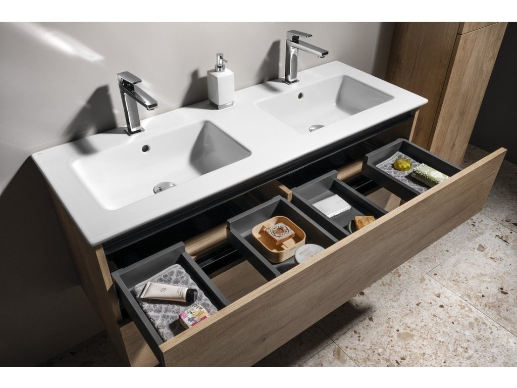 EZARA dvojumyvadlová skříňka 120x55x46cm; dub stříbrný