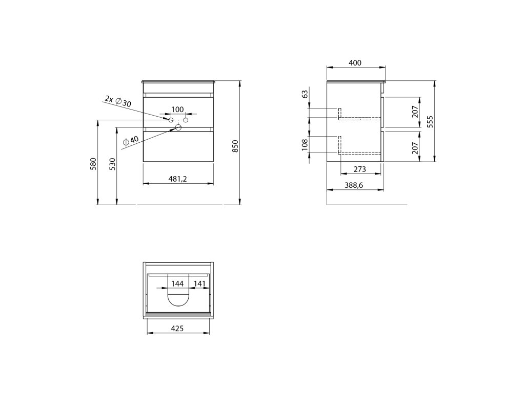 Zásuvky jsou vybaveny výsuvy s pomalým dojezdem a automatickým dovřením. Úložný prostor lze rozšířit přidáním doplňkových skříněk ESPACE. Nábytek je dodáván ve smontovaném stavu, připravený k okamžité instalaci.