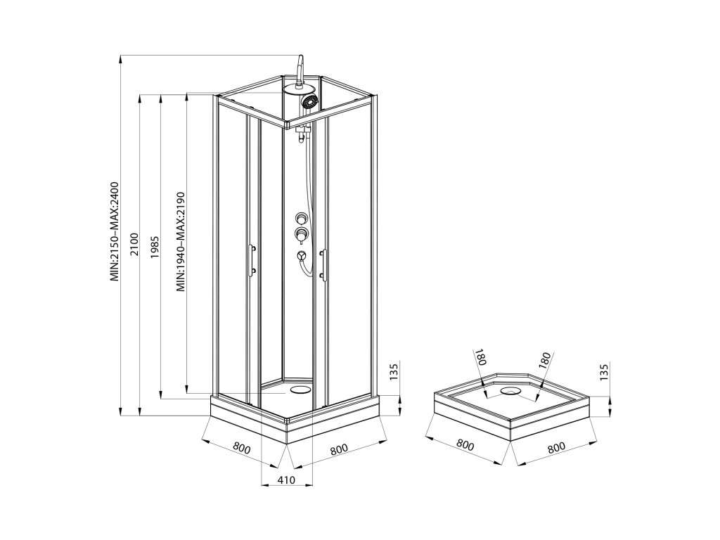 GRANVIK čtvercový sprchový box 800x800x2180mm; čiré sklo