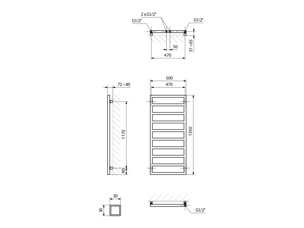 - Topná tyč a připojovací ventily nejsou součástí balení