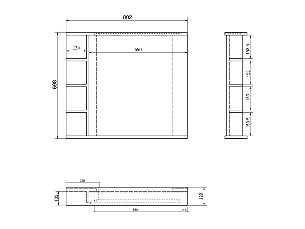 KORIN STRIP zrcadlo s LED osvětlením a policemi 80x70x12cm