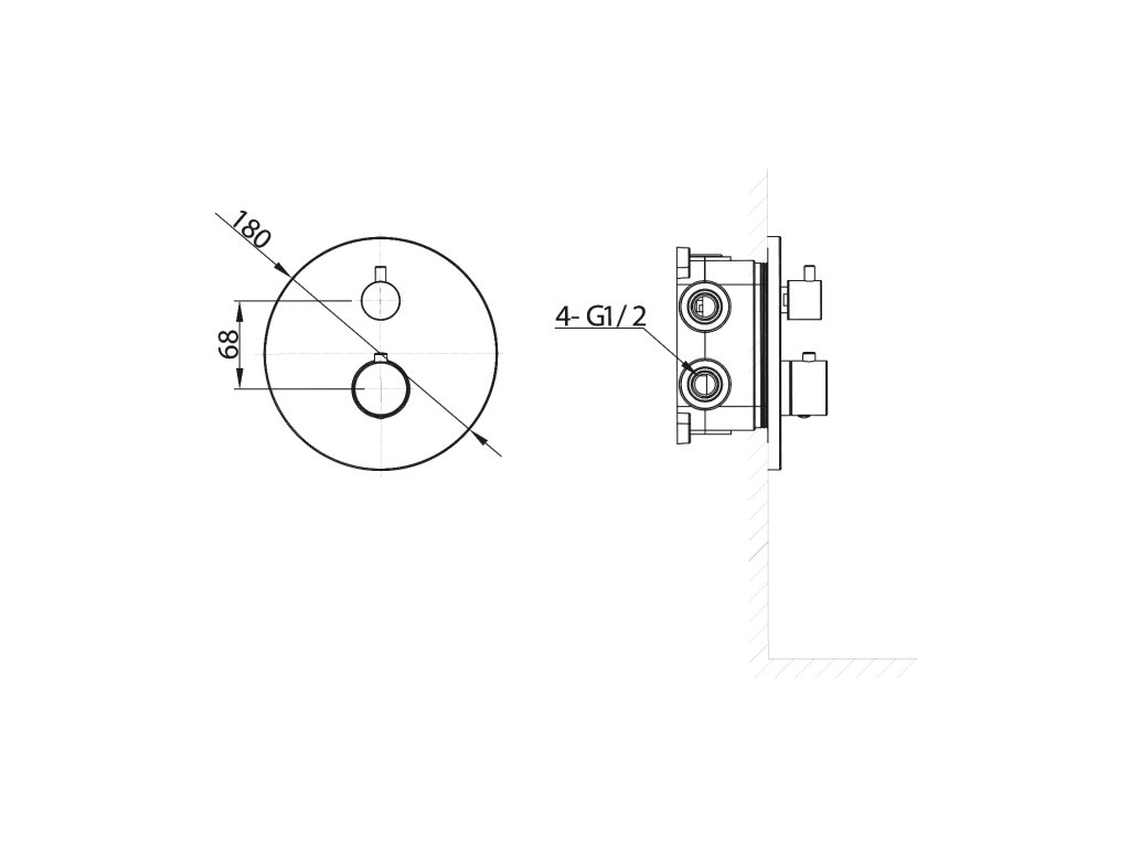 Podomítková sprchová termostatická baterie; box; 2 výstupy; chrom