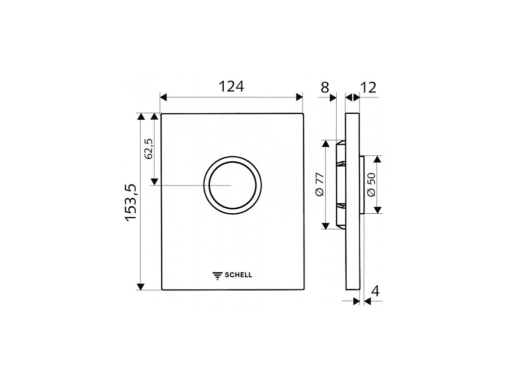 Schell Edition 028020699 chromChromovaná ovládací deska Schell Edition 028020699 pro podomítkový tlakový splachovač SCHELL COMPACT II – kompletní sada vč. samouzavírací kartuše, deska z umělé hmoty, barva chrom. Ovládací deska Schell Edition 028020699 s jednotlačítkovým ovládaním.