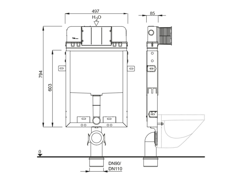 SCHWAB SET WC 199 podomítková nádržka pro zazdění 3/6l, DN110mm