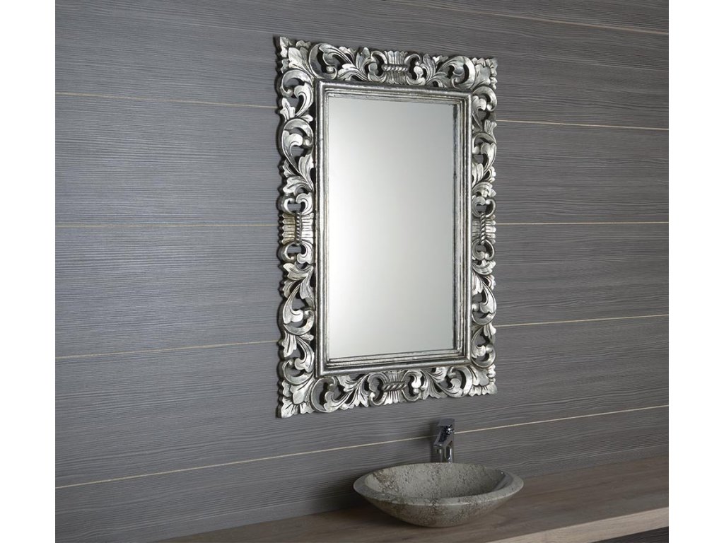 SCULE zrcadlo ve vyřezávaném rámu 70x100cm; stříbrná