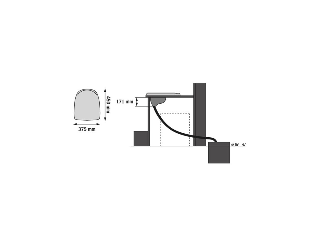 Tato toaleta je dodávána bez odvětrávacího systému a kontejneru na tuhý odpad