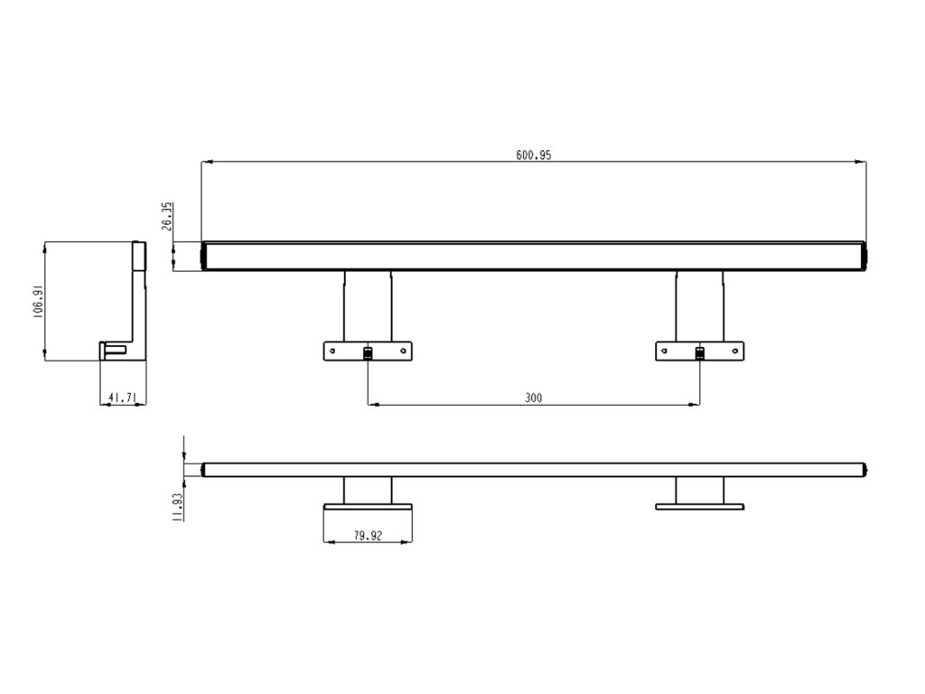 SERAPA LED svítidlo, 9W, 230V, 600x40x100mm, IP44, hliník, černá mat