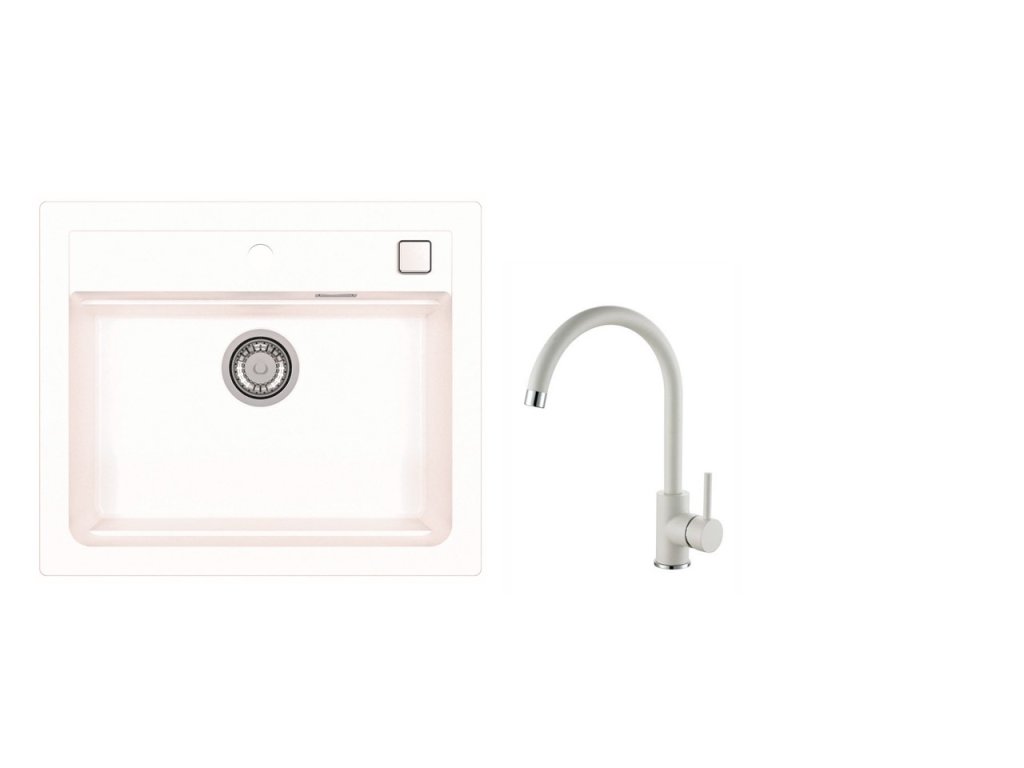 SET ALVEUS ATROX 30/11 + BATERIE ROXA 11 - obdélníkový granitový bílý dřez 590x500x200 mm v setu s baterií