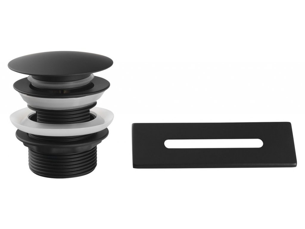 SET krytka přepadu, vanová výpust 6/4", click-clack, černá mat