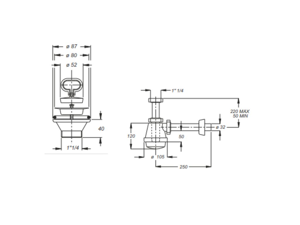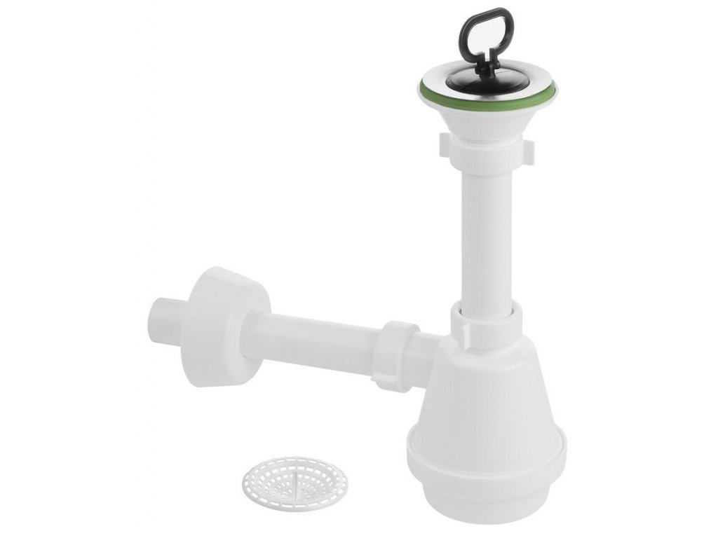 Sifon pro výlevku; nerez výpust 80mm; zátka s uchem; DN32; bílá