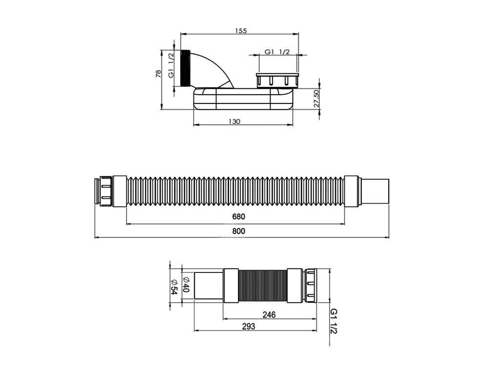 Sifon nízký 6/4", s flexi připojovací hadicí DN40