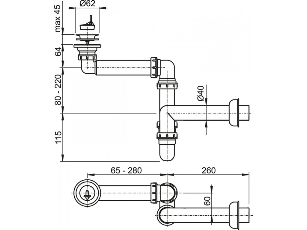 umyvadlový sifon včetně výpusti – umyvadlového ventilu