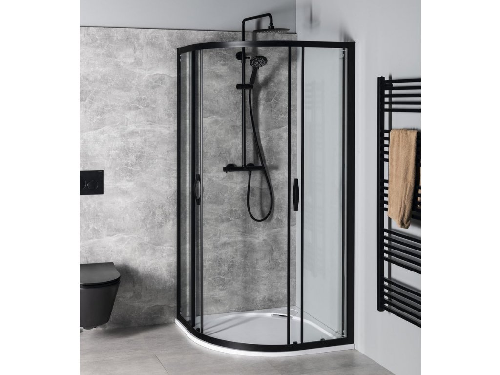 SIGMA SIMPLY BLACK čtvrtkruhová sprchová zástěna 800x800 mm, R550, čiré sklo