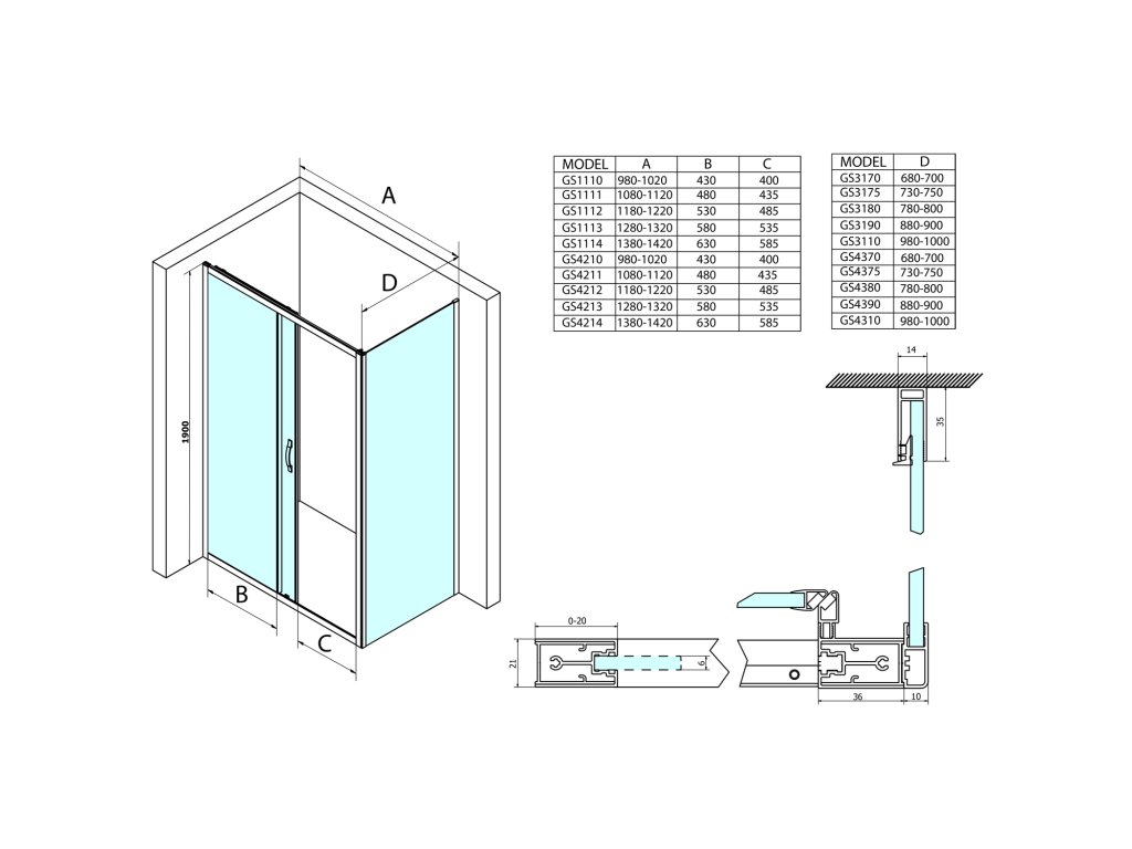 - Čtvercové a obdélníkové zástěny s rohovým vstupem vytvoříte spojením dvou posuvných dveří pro rohový vstup