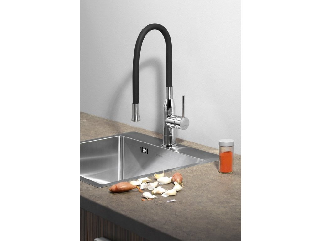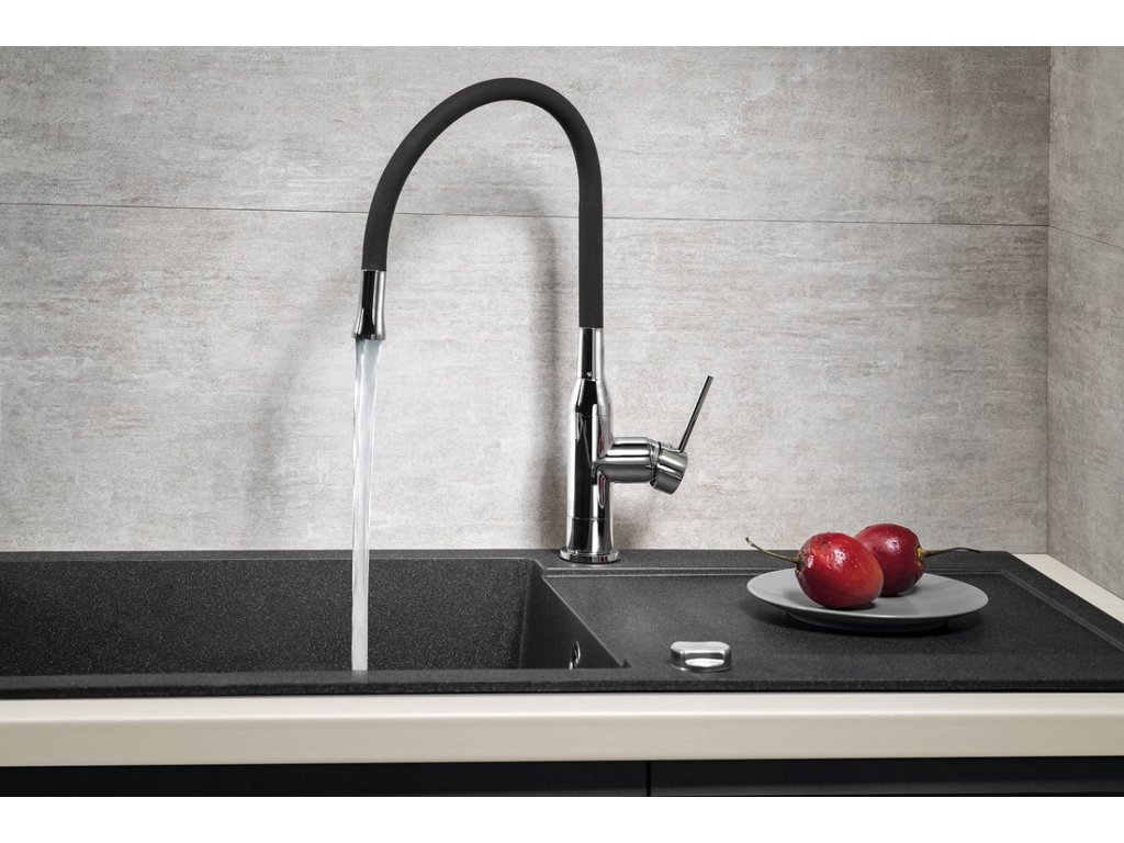SILI stojánková dřezová baterie, flexibilní ramínko, černá/chrom