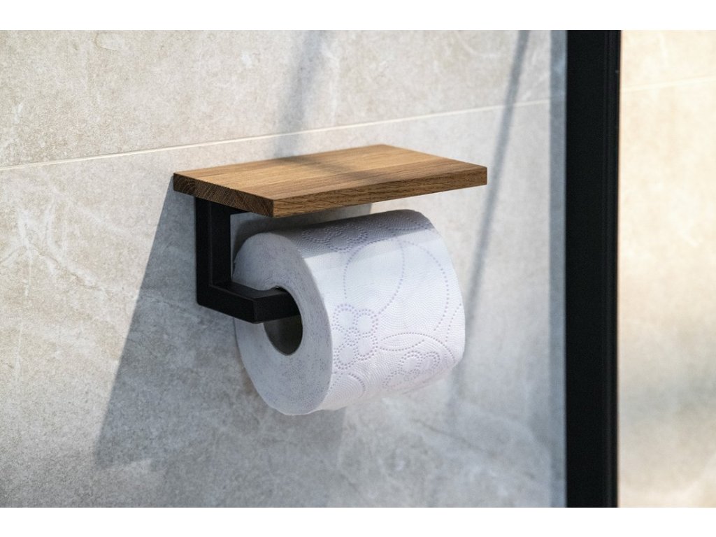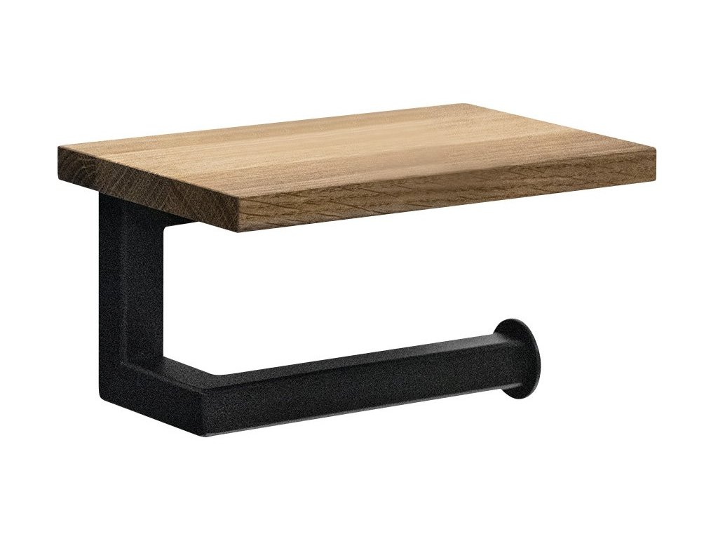 SKA držák toaletního papíru s poličkou, černá mat/dub