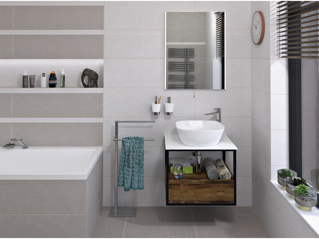 Konstrukce ze série SKARA jsou vhodné do koupelen zařizovaných v moderním i industriálním stylu. Skvěle je doplní vysoká skříňka SKARA ve stejném dekoru nebo skříňky a zrcadla TREOS s rámem v dřevěném dekoru. Perfektní je i kombinace s podsvíceným zrcadlem SORT v černém hliníkovém rámu.