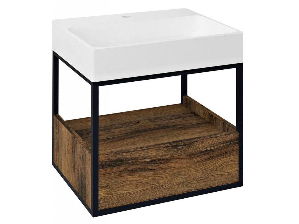 SKARA umyvadlová skříňka 59x49,5x46,5cm, černá mat/dub Collingwood