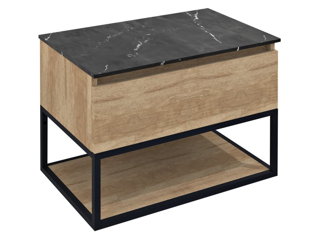 SKARA umyvadlová skříňka 70x50x45cm; černá mat/dub alabama