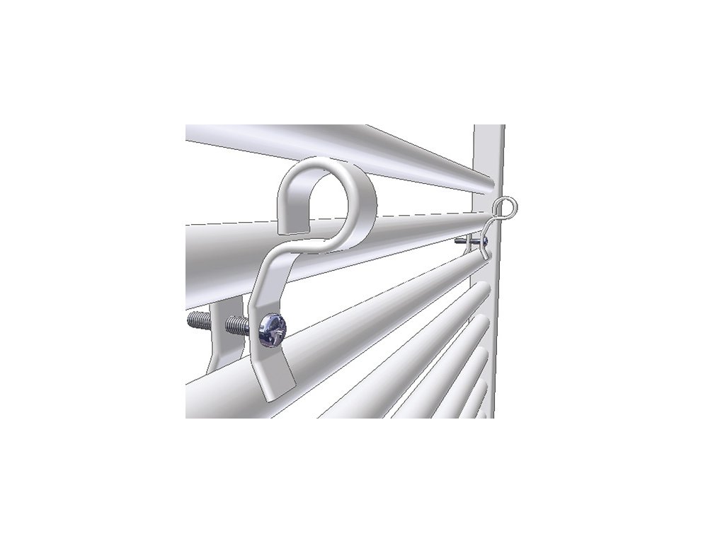 Obsah dodávky: sušák ručníků na dva ručníky + komponenty potřebné k instalaci (upínky, šrouby, podložky), návod k instalaci