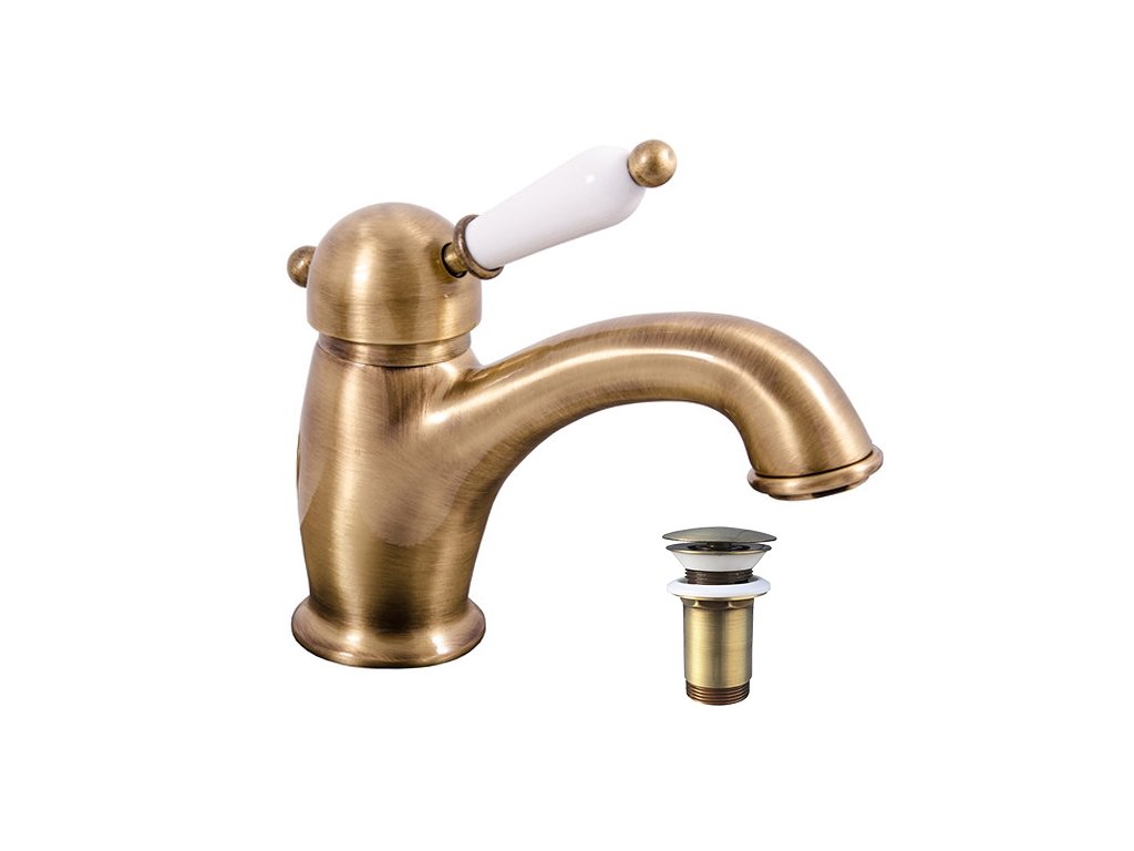 Slezák Rav Labe - stará mosaz L527.0SM umyvadlová stojánková baterie s výpustí click-clack - keramická páčka