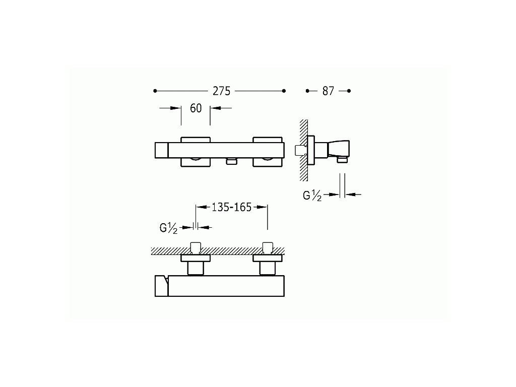 Sprchová nástěnná baterieRozteč připojení: 150 mm