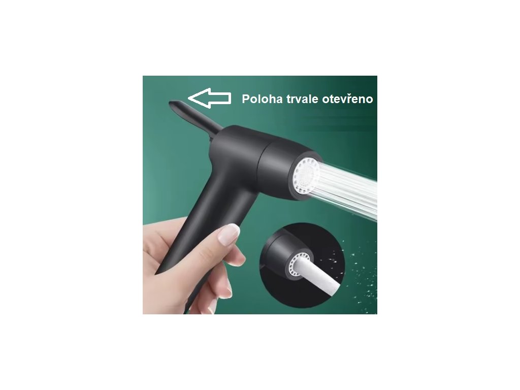 - zámek otevřené spršky (vyklopením páčky nahoru zůstává sprška puštěná bez nutnosti držení páčky)