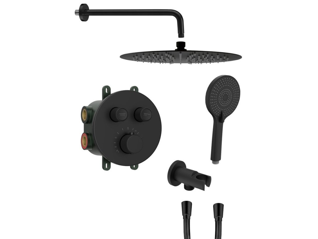 SMART SELECT podomítkový sprchový set s termostatickou baterií, 2 výstupy, vyústění, černá mat